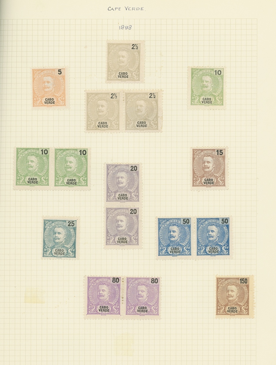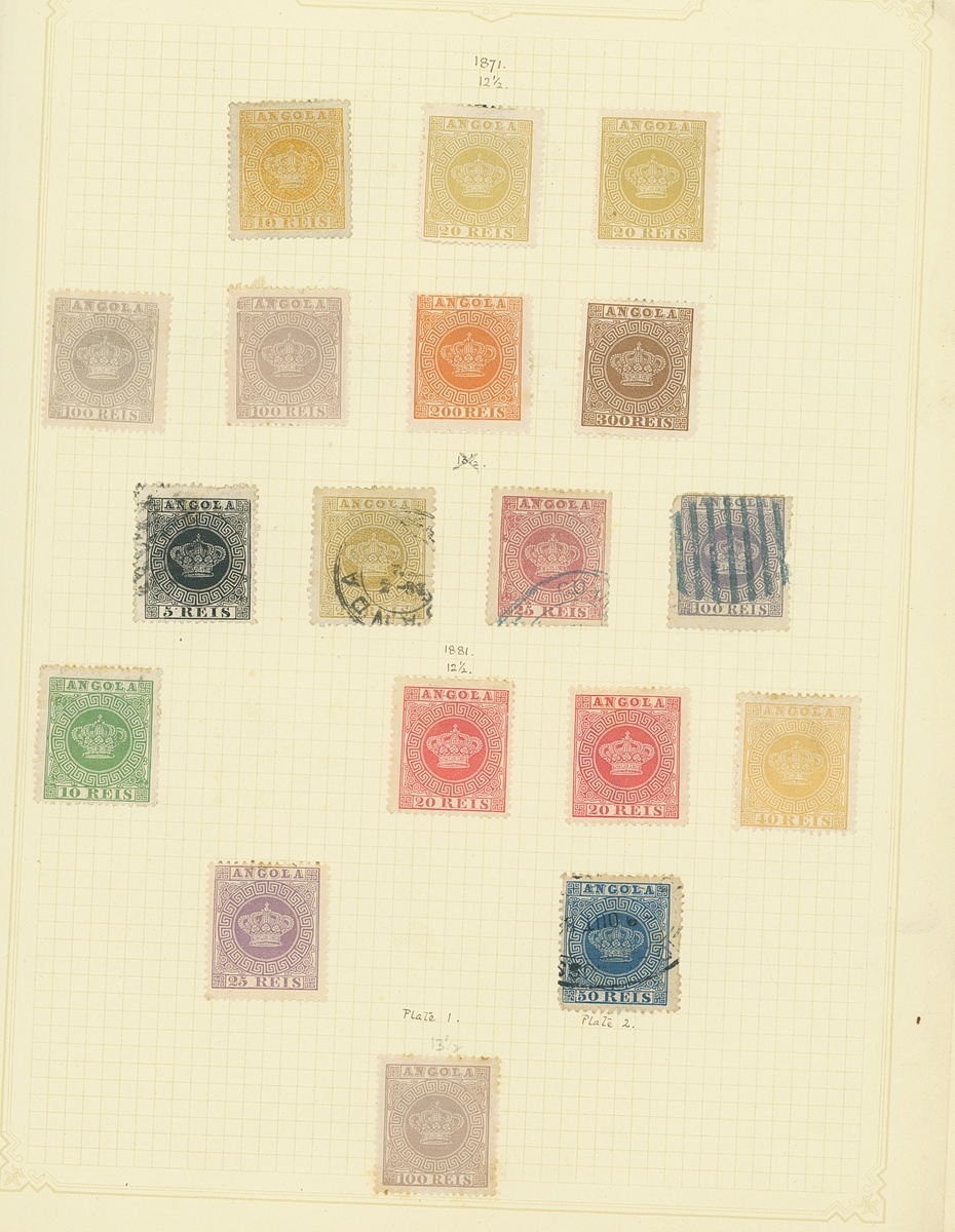 Mint and used collection housed in a red album, including Angola, Azores, Cape Verde 1877 50r. used, Madeira Funchal, Portuguese Guinea, Portuguese India, St. Thomas and Prince, Timor, etc., mixed condition