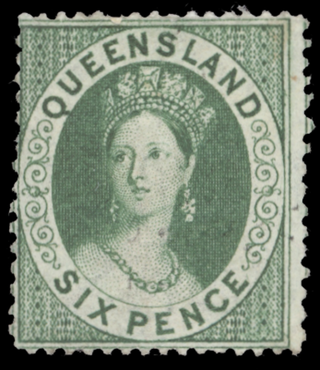 1860 wmk. Large Star, clean-cut perf 14-16, 6d. green, unused with part original gum, fine. S.G. 6, £1500