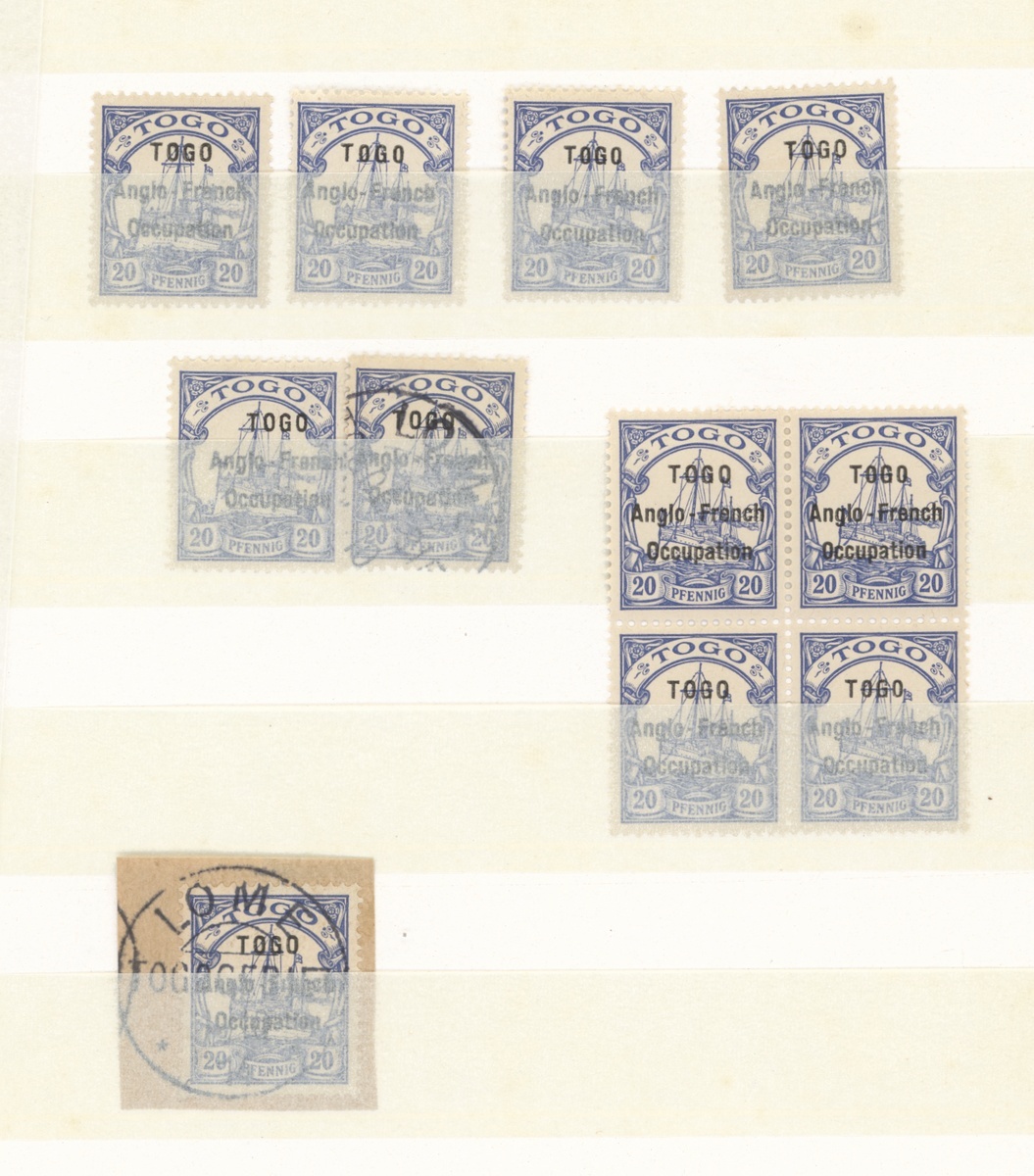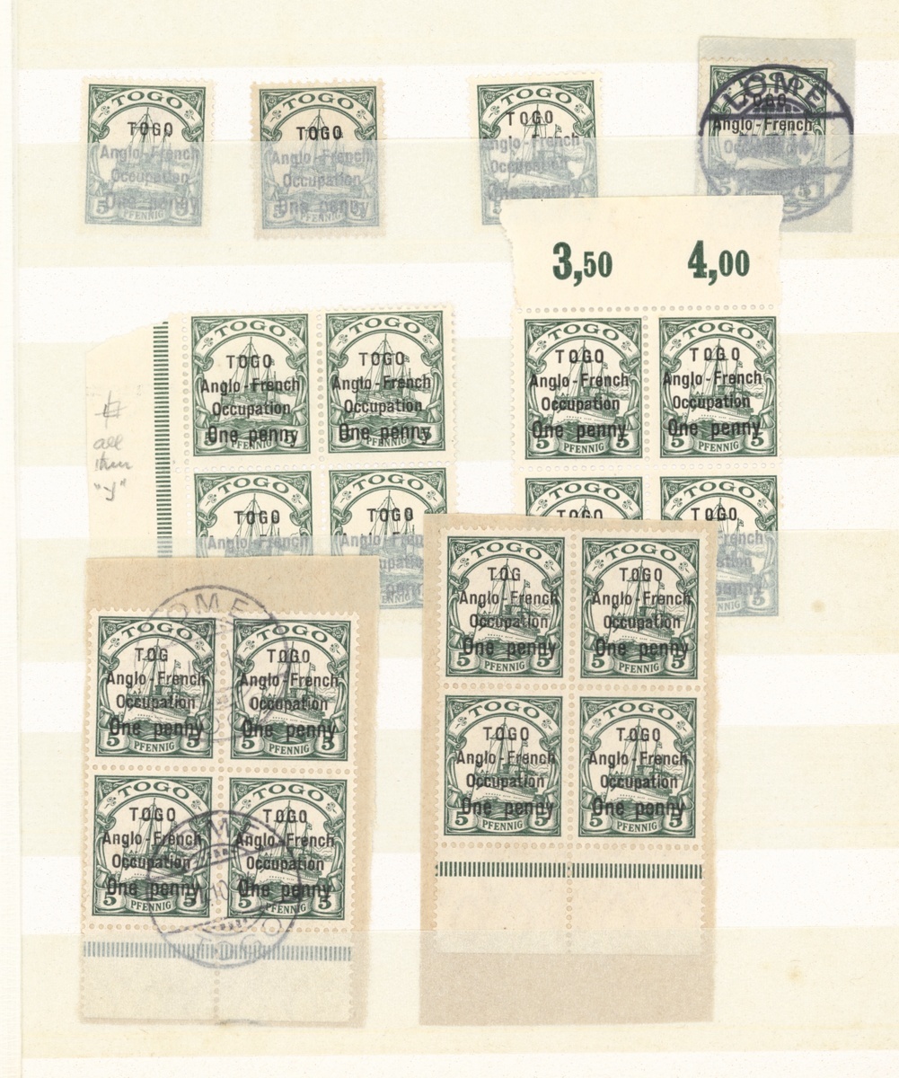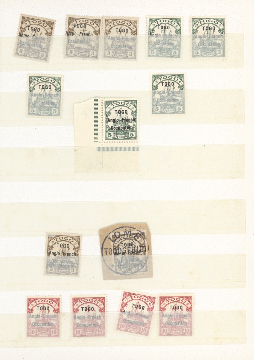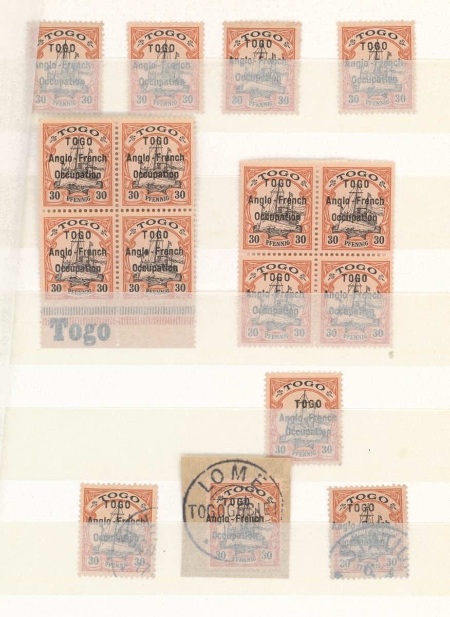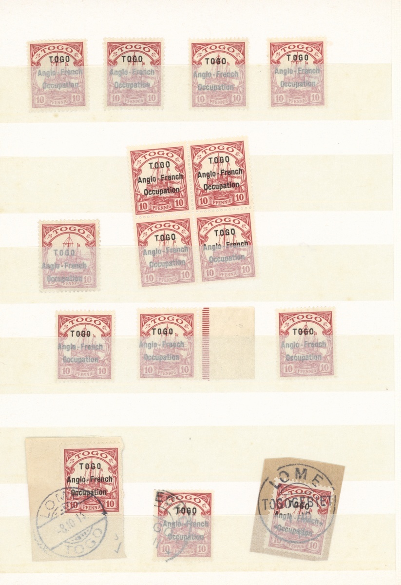 1914-15 overprint mint and used collection in small stockbook including Type 1 40pf. carmine mint (10 including block of four) and used (2), 80pf. black and carmine on rose mint (6) and used (2), some French Occupation issues to 80pf., marginal examples, blocks of four etc., a useful and valuable assembly