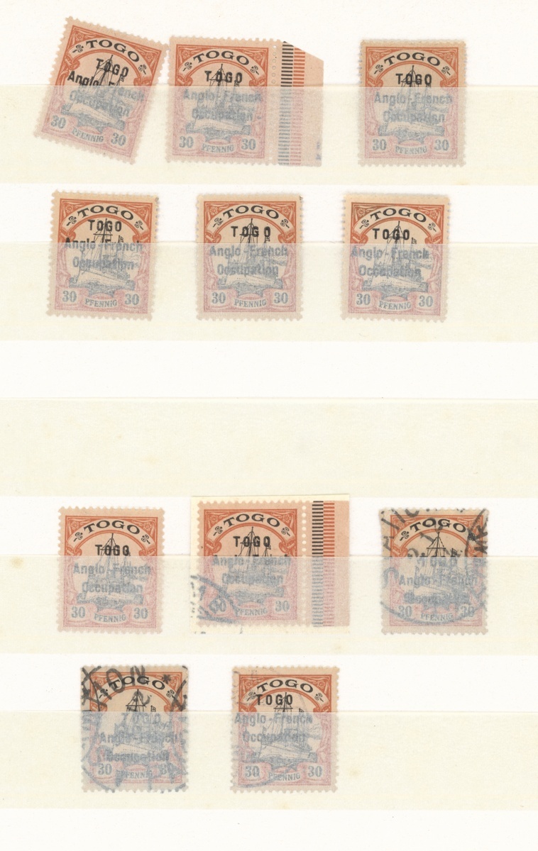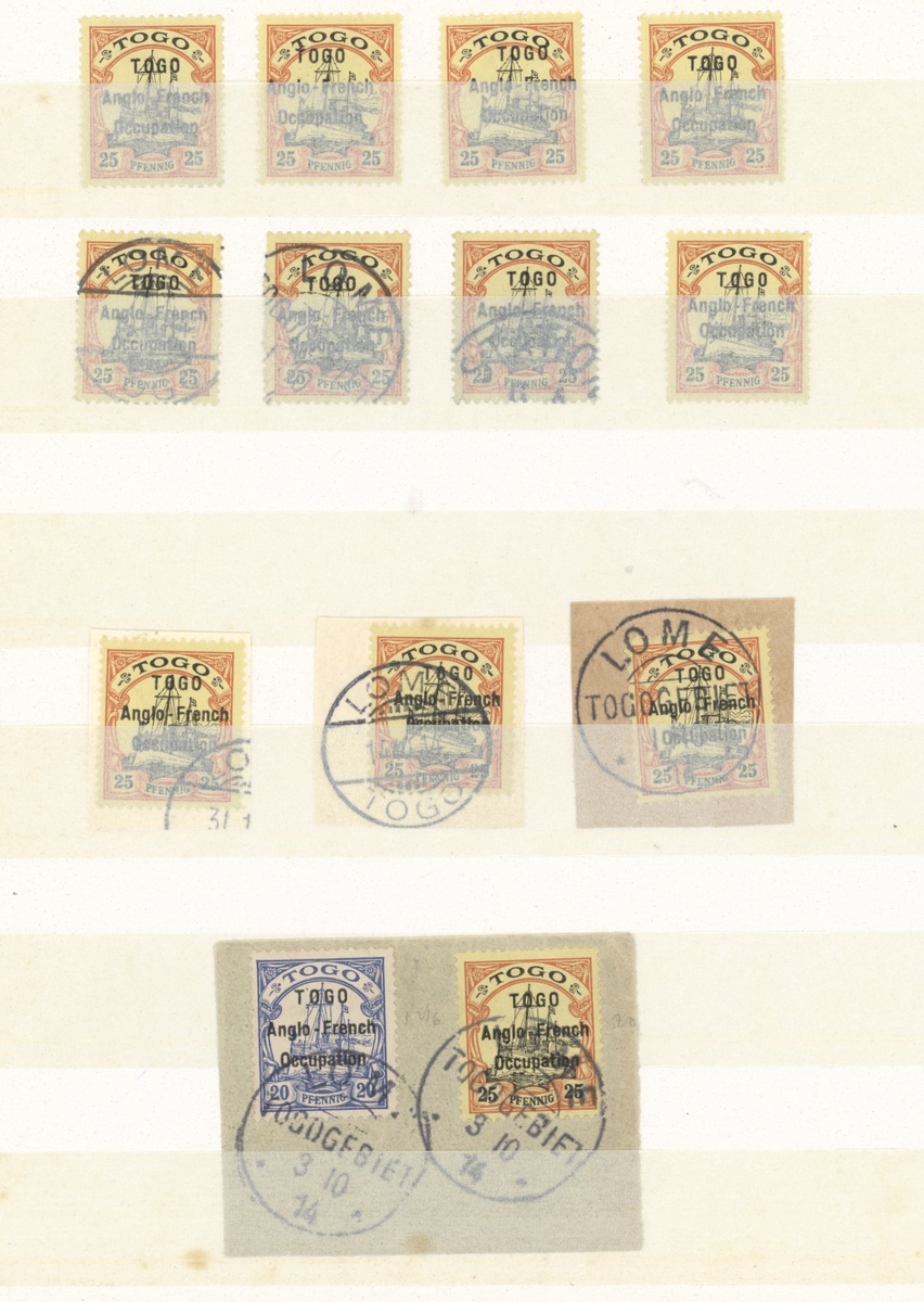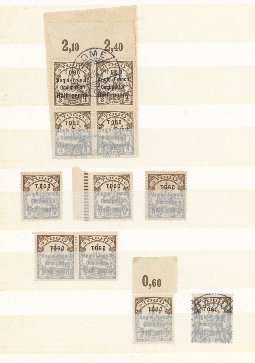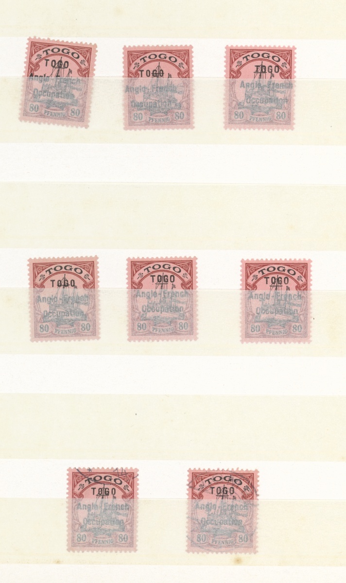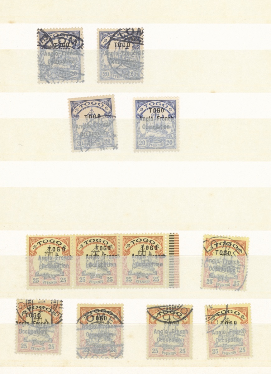 1914-15 overprint mint and used collection in small stockbook including Type 1 40pf. carmine mint (10 including block of four) and used (2), 80pf. black and carmine on rose mint (6) and used (2), some French Occupation issues to 80pf., marginal examples, blocks of four etc., a useful and valuable assembly