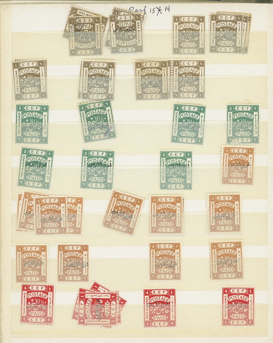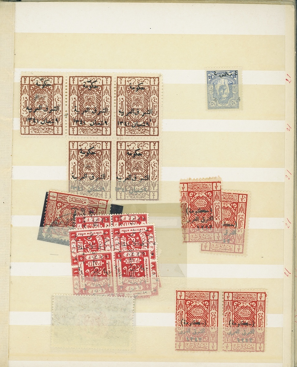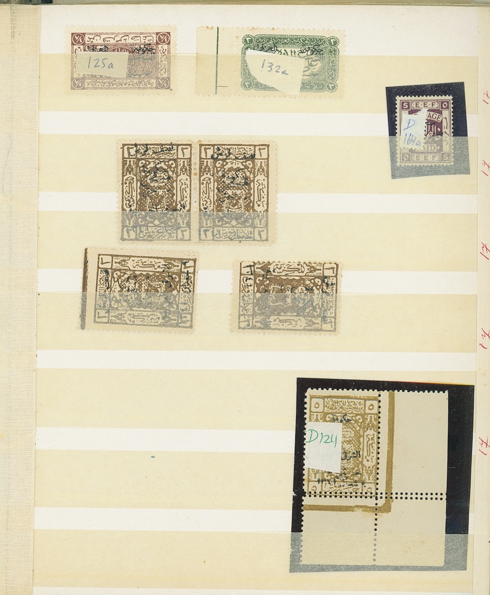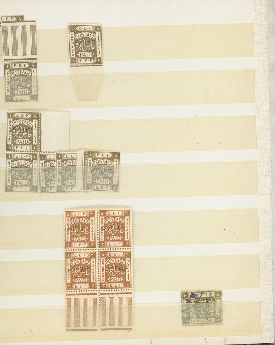 A duplicated mint and used selection in a stockbook, including 1920 "East of Jordan" 1m. perf. 15x14 overprint inverted (2), 1m. perf. 14 overprint inverted (5), 1922 Amman surcharges with better values to 20p .on 20p. perf. 14, 1922 "Arab Government of the East" with 9p. violet overprint, 3m. perf. 14, 1923 "Arab Government of the East" 5p. perf. 15x14 (9, one with Gold overprint inverted), perf. 14 9p. (5), 10p. (8), 20p. (6), 1923 handstamped surcharges, 1923 overprints on Saudi Arabia, 1924 Independence with values to 20p., later issues, Postage Dues, etc., mixed condition and almost certainly containing some forgeries, nevertheless a fascinating and valuable lot which will reward careful viewing and sorting