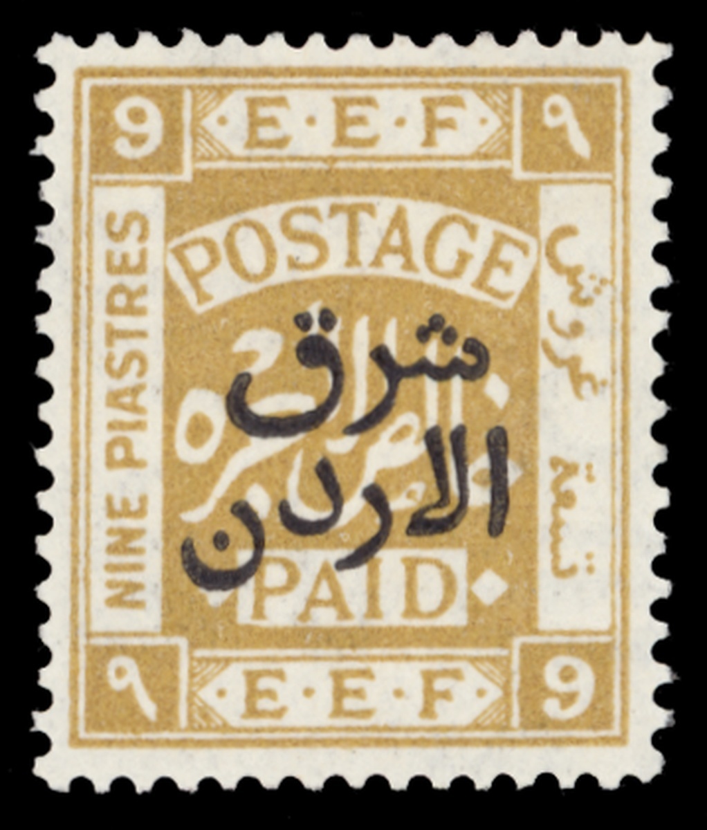 1925-26 "East of Jordan", 9p. ochre, perf. 15x14, large part original gum, pencilled signature on the reverse; fine. S.G. 155a, £900