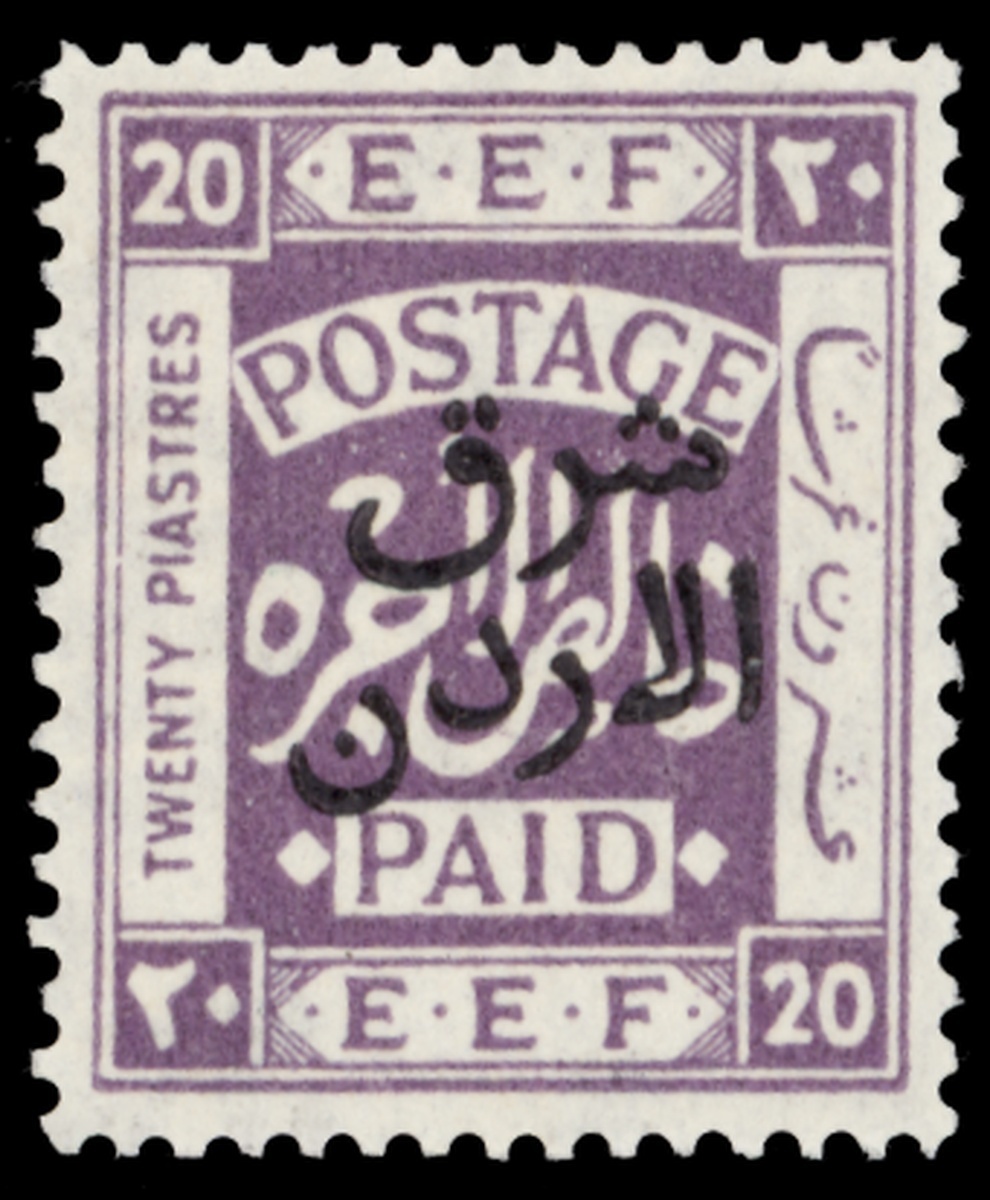 1925-26 "East of Jordan", 20p. light violet, perf. 15x14, original gum, pencilled signature on the reverse; fine. S.G. 157a, £850