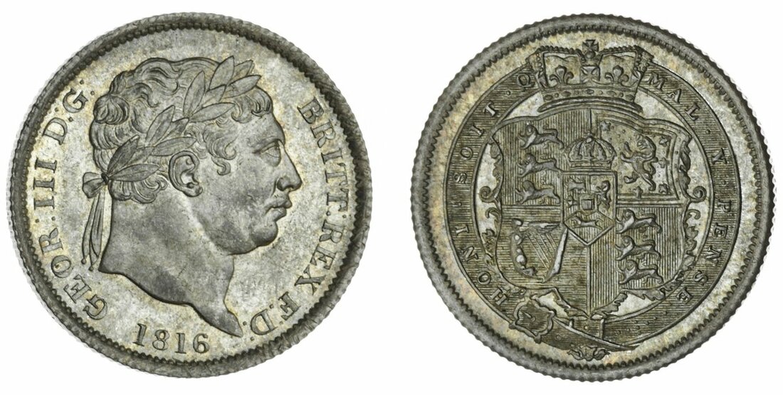 The Hardcastle Collection | George III (1760-1820), Shilling, 1816, New Coinage (ESC 2140 [1228]; S.3790), lustrous, good extremely fine