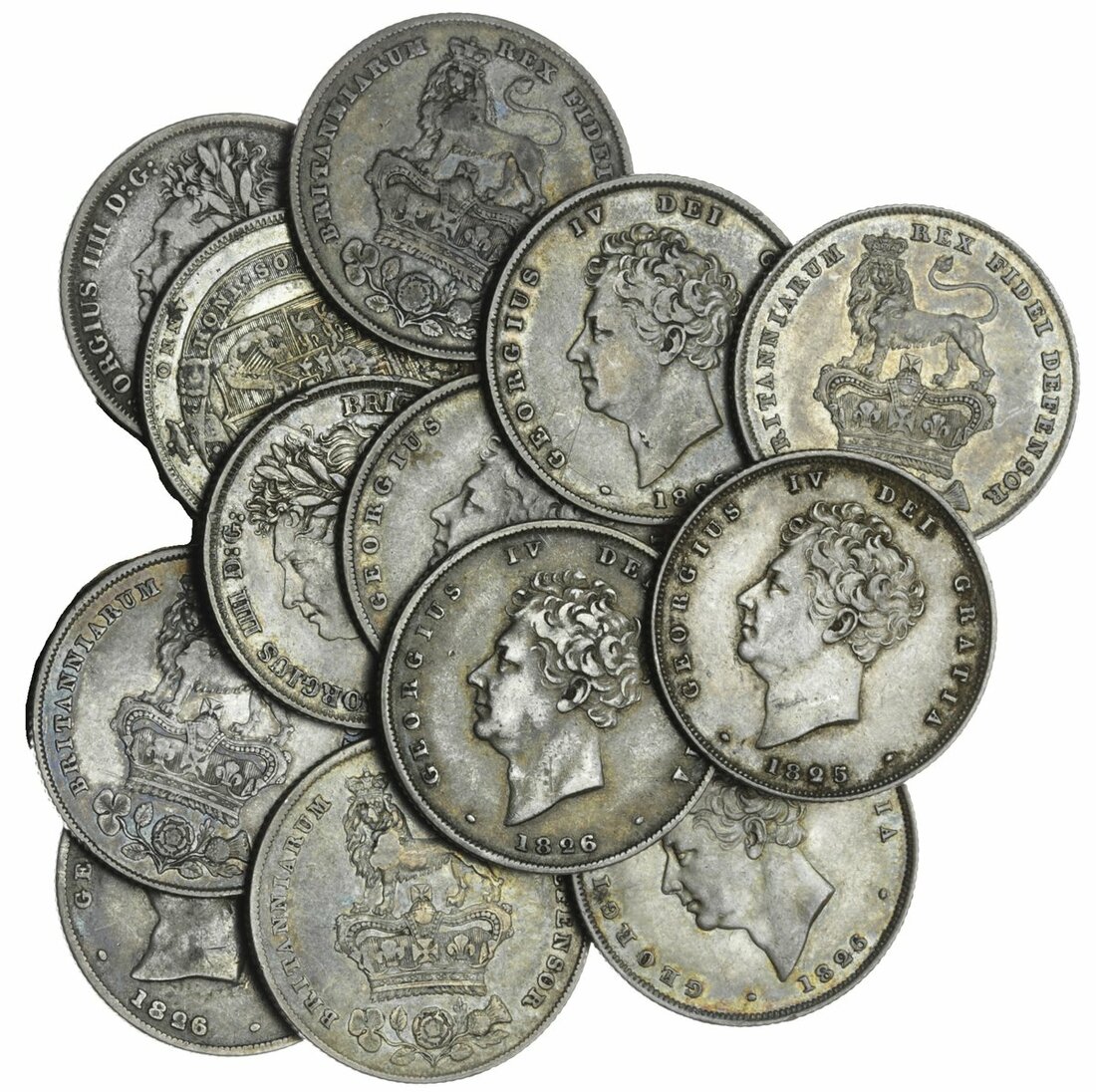 The Hardcastle Collection | George IV (1820-30), Shillings (13), 1825, type 2 (3), type 3 (1); 1826 (8); 1827 (S.3811, 3812), generally very fine or better (13)