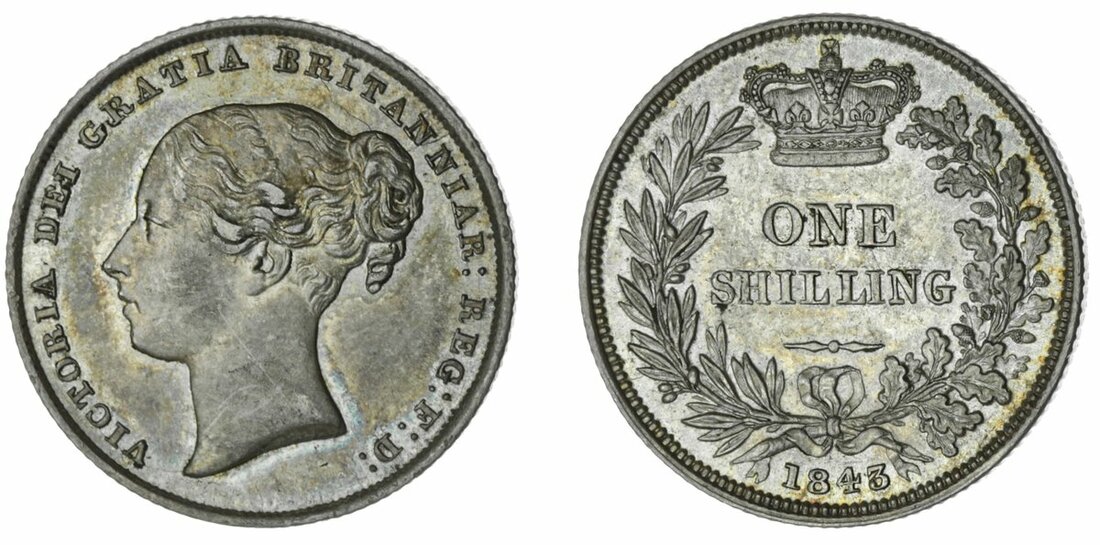 The Hardcastle Collection | Victoria (1837-1901), Shilling, 1843, type A³, edge milled, 6h (ESC 2989 [1290]; S.3904), toned, good very fine, scarce