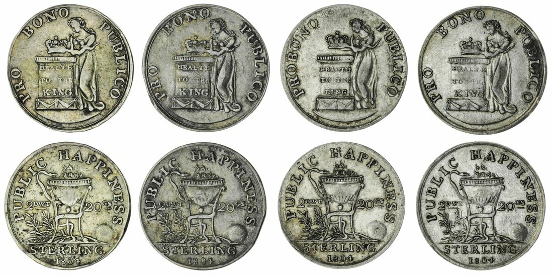 The Hardcastle Collection | Ireland, Dublin, Anonymous Issues, Silver Shilling Tokens, 1804 (4) (D 8, 9, 9, 9), fine to very fine (4)
