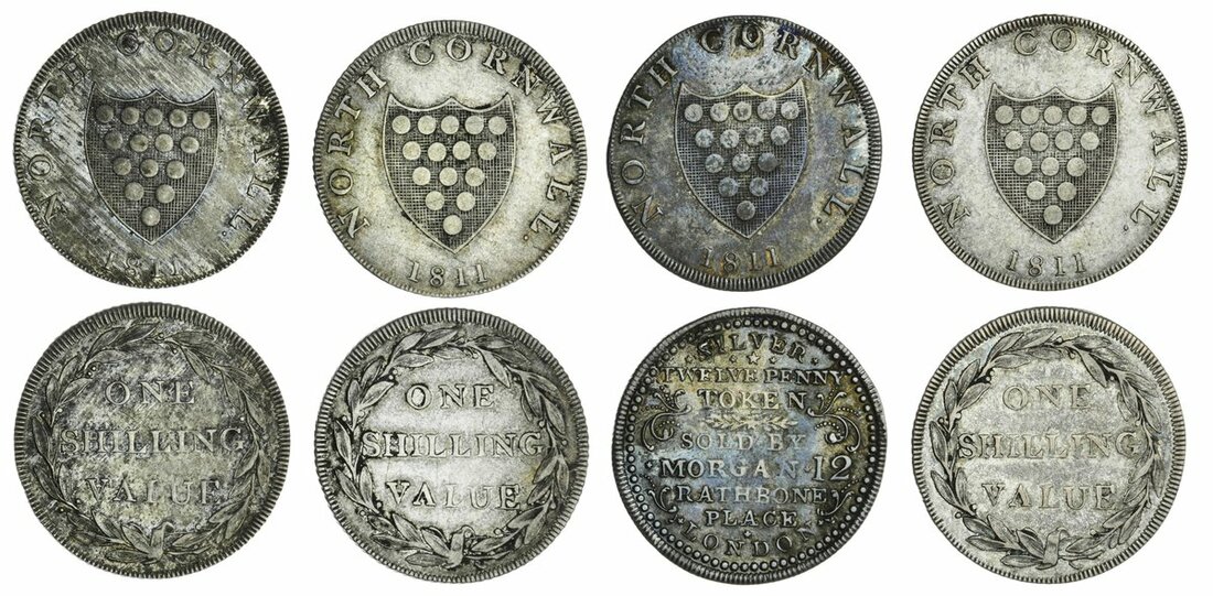 The Hardcastle Collection | Cornwall, North Cornwall, Shillings, 1811 (DH 1; DH 4), very fine to extremely fine, the DH 4 plugged and expertly filled with reapplied detail (4)