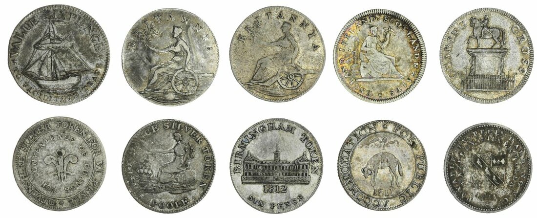 The Hardcastle Collection | A miscellany of Sixpenny Tokens (10), Hampshire, Dorset, West Midlands, Staffordshire, Middlesex, fine to extremely fine (10)