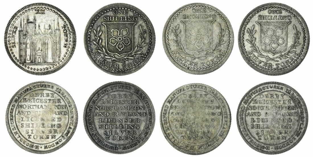 The Hardcastle Collection | Leicestershire, Derby, Leicester, H. Morgan, Shillings (4) (DH 1, 3), fine to very fine, the fourth lustrous, good very fine (4)