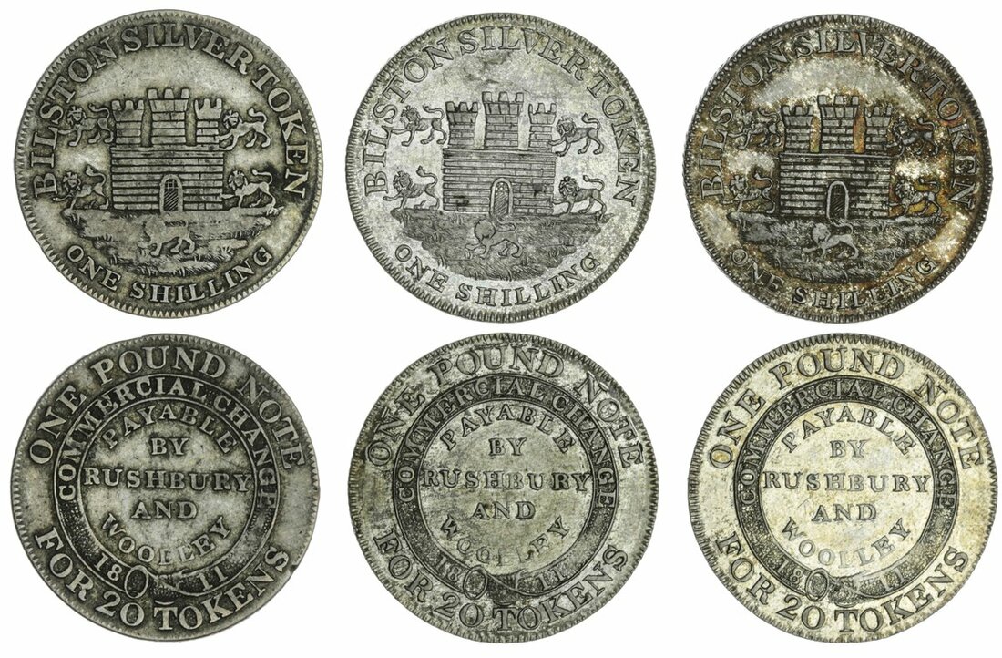 The Hardcastle Collection | Staffordshire, Bilston, Rushbury & Wooley, Shillings (3), very fine to extremely fine (3)