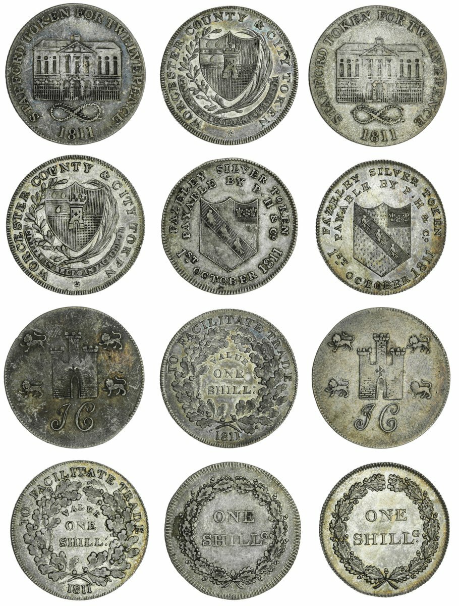 The Hardcastle Collection | Staffordshire, Fazeley, Shillings, 1811 (2), fine and extremely fine; also Stafford, Shillings, 1811 (2), fine; lastly, Worcestershire, Worcester, Shillings, 1811 (2), good very fine to almost extremely fine (6)