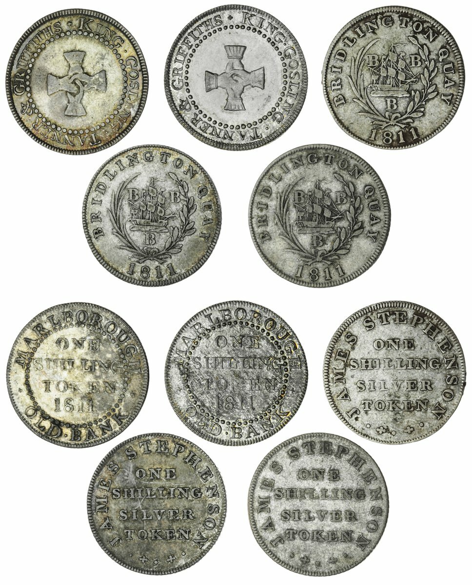 The Hardcastle Collection | Yorkshire, Bridlington, James Stephenson, Shillings, 1811 (3), fine or better; also Wiltshire, Marlborough, Tanner & Griffiths, Shillings, 1811 (2) both very fine (5)