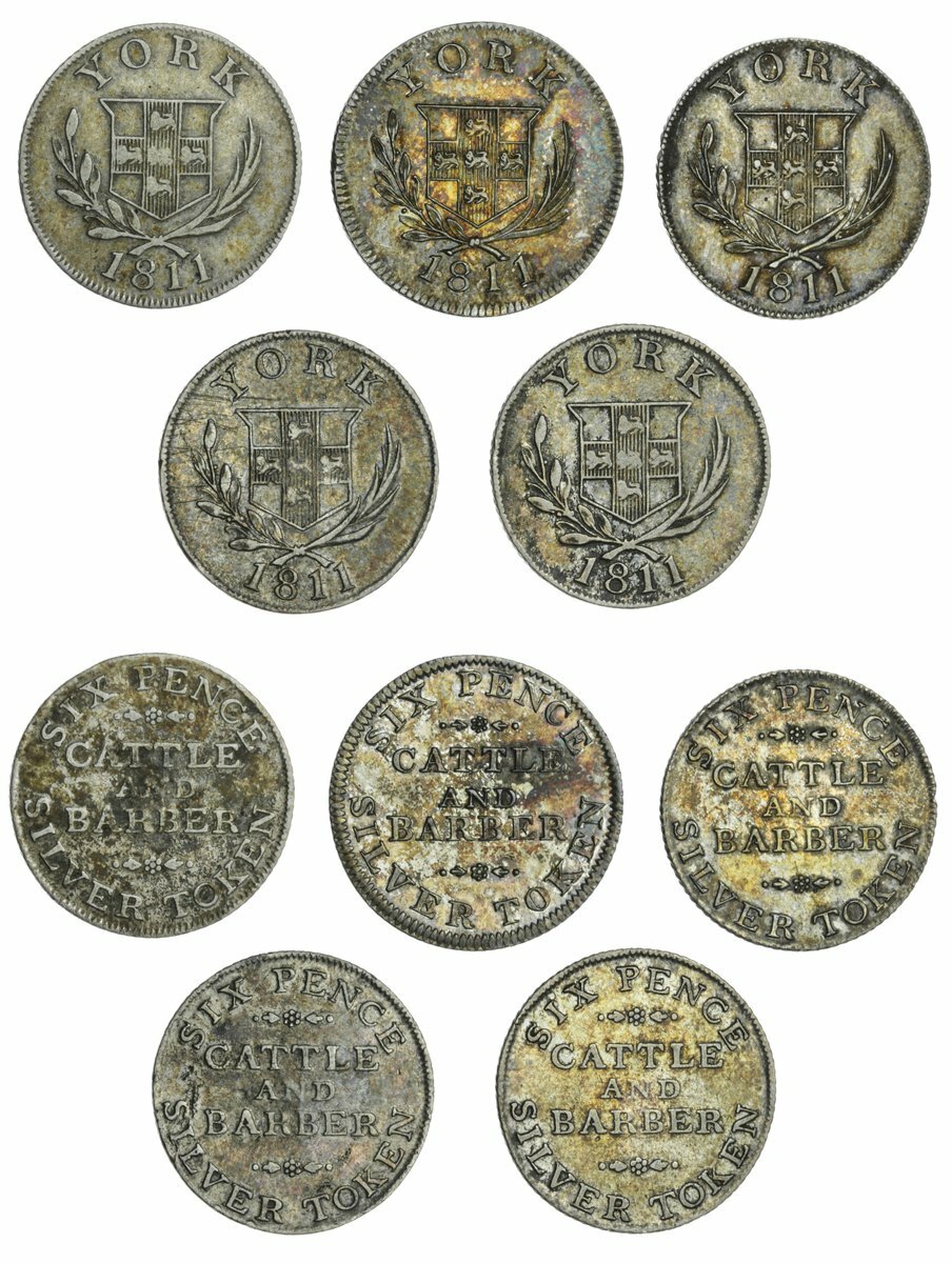 The Hardcastle Collection | Yorkshire, York, Cattle and Barber, Sixpences, 1811 (5),generally fine to very fine, one about uncirculated (5)