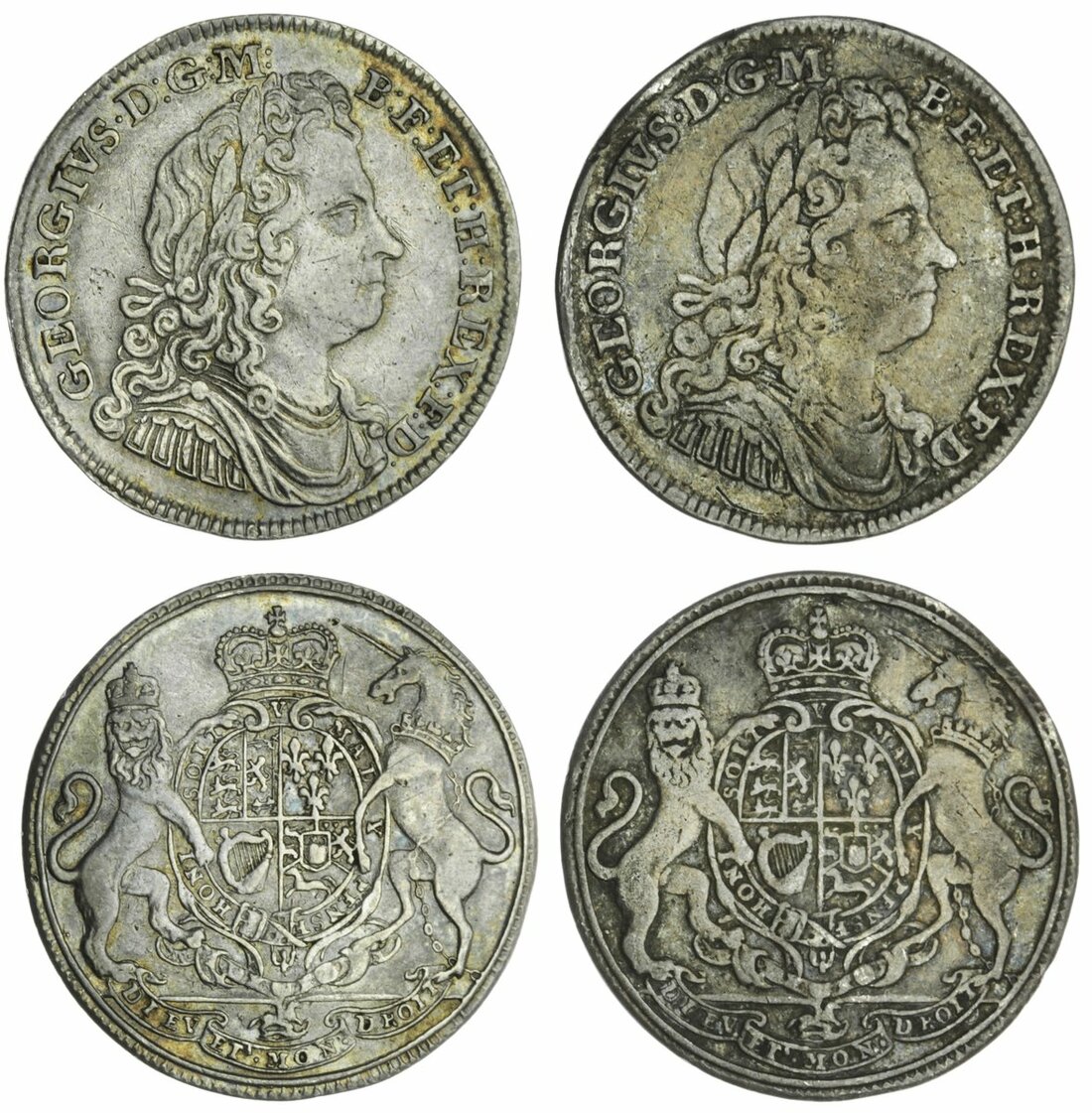 The Hardcastle Collection | George I (1714-27), Coronation, AR Medallets or Counters, c. 1714 (2), unsigned, laureate and armoured bust right, rev. Royal arms flanked by lion and unicorn supporters, 25mm., 3.33g; another, 3.43g (MI 428/18; Eimer 471), one lightly bent, a bold fine, the second good very fine (2)