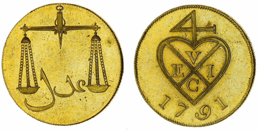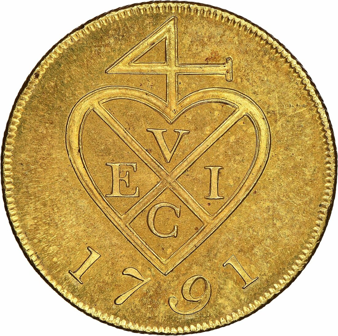 The Hardcastle Collection | PROOF 64 ~ [Top Pop] | British India, Bombay Presidency, Proof 6-Reas [1½-Pice], 1791, in gilt copper, Soho (Stevens 8.20; Pridmore 127; KM 195a), a handsome coin, much as struck, in NGC holder, graded PF64 (Cert. #5878623-006) [*Single Finest*]