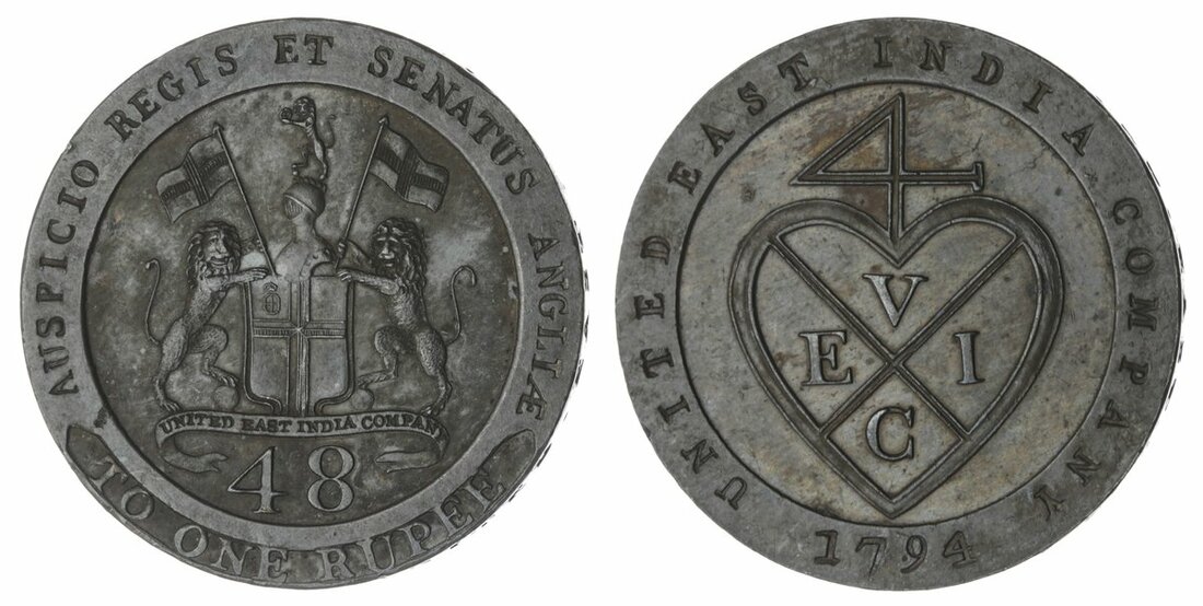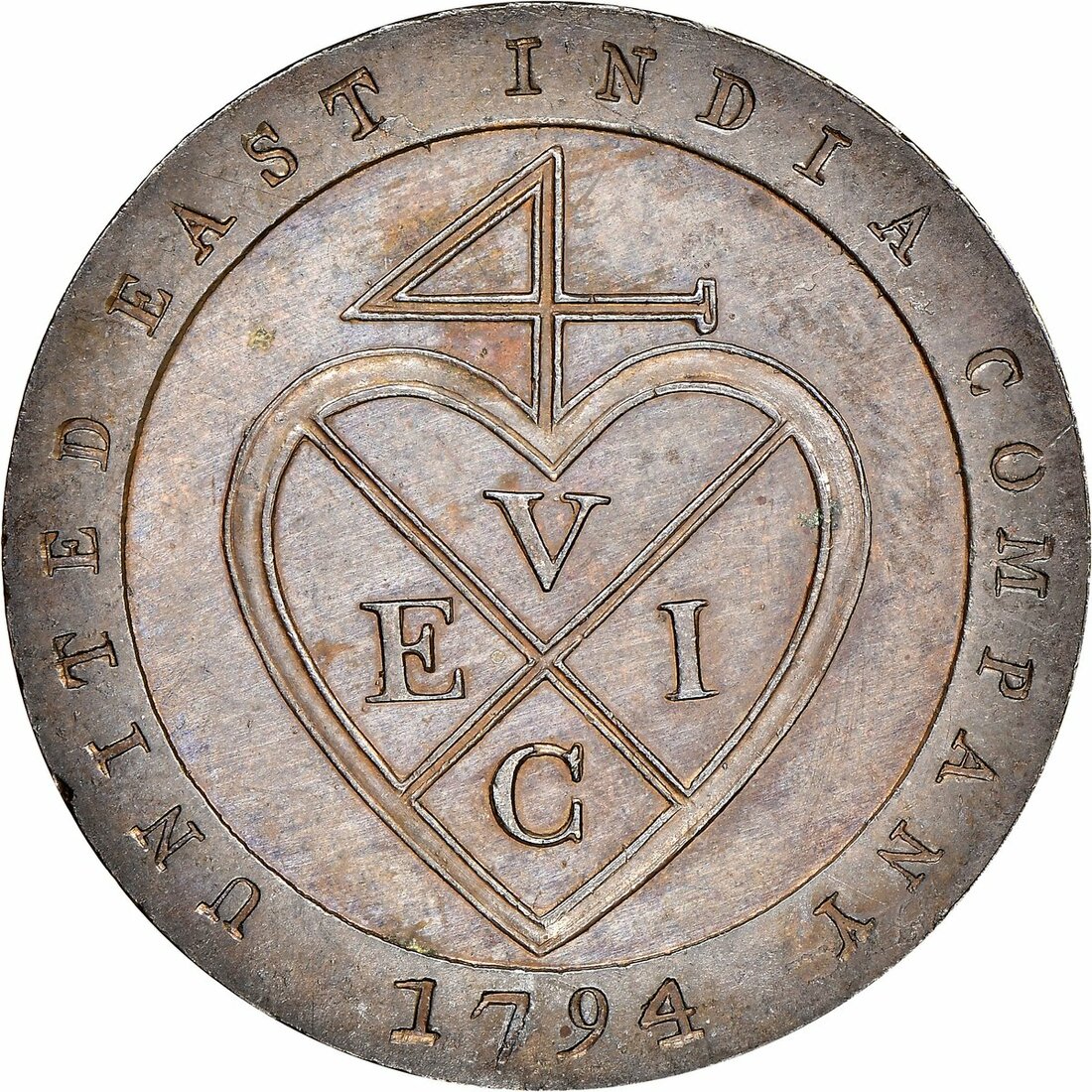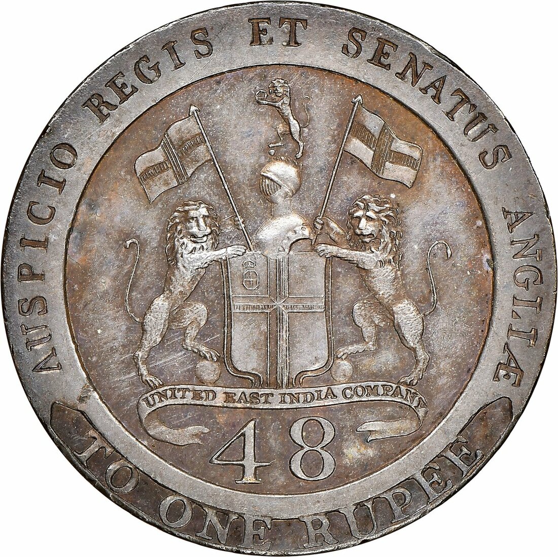 The Hardcastle Collection | PROOF 62 BROWN | British East India Company, Madras Presidency, Northern Circars, Proof Dub (1/48-Rupee), 1794, Soho, in copper, Arms of the East India Company, lions face forwards, 48 below, rev. bale mark, ENGLISH UNITED EAST INDIA COMPANY on edge, 13.90g, 6h (Stevens 5.169; Pridmore 311), about uncirculated, in NGC holder, graded PF62 BN (Cert. #5878623-012) [Tied 1 of 2 / 41 Finer]
