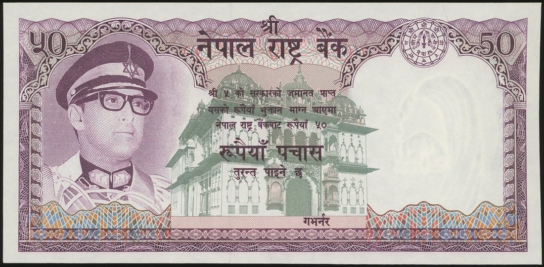 (x) Nepal Rastra Bank, proof for 50 rupees, ND (1977), without serial numbers and signatures,