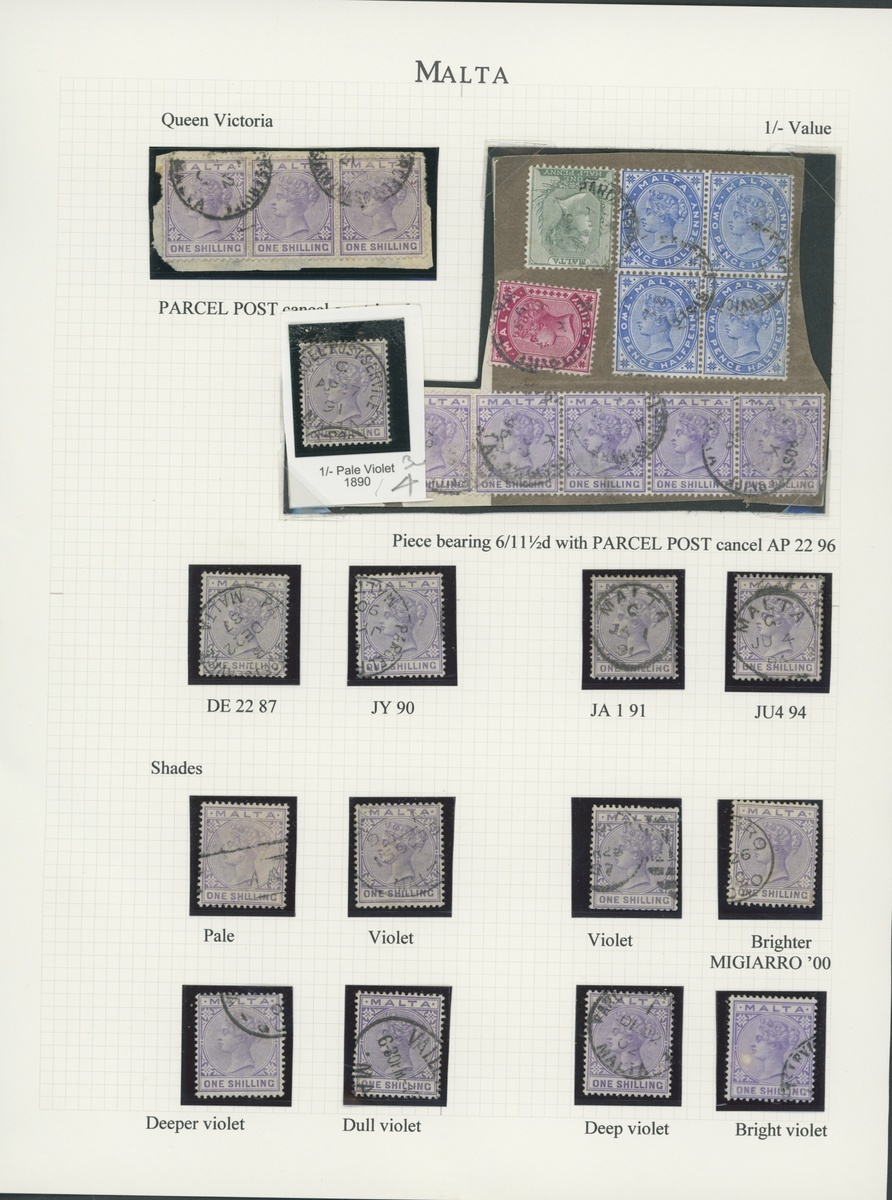 1885-90 ½d. to 1/- used range comprising ½d. block of nine, strip of five and singles (2) 1d. rose (3), 1d. carmine block of ten and singles (6), 2d. (6), 2½d. blocks of six, four (2), pairs (2) and singles (12), 4d. blocks of four (2) and singles 6) and 1/- strips of five (on piece with ½, 1d. and 2½d. block of four) and three and singles (15); condition generally fine. S.G. 20-29, £440+