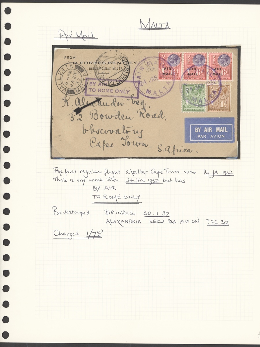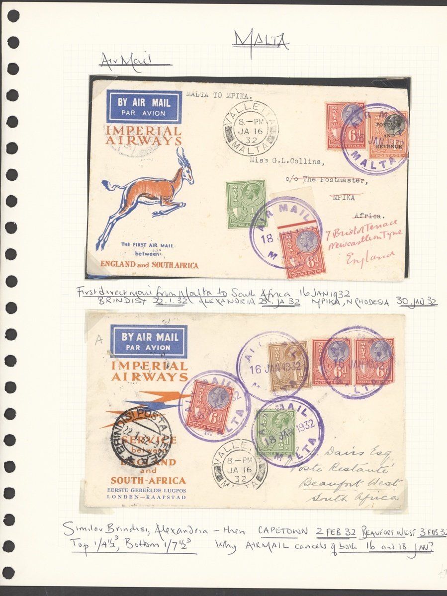1932 (Jan.) to Mpika and Cape Town (2), (Feb.) to Tripoli (addressed to USA) and UK, (Apr.) to Cyprus and (Oct.) to Zurich, variously franked, fine