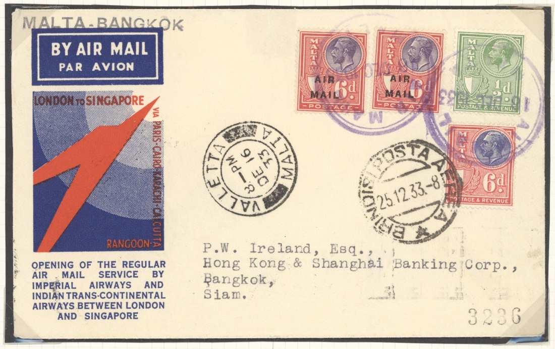 1933 (Mar.) to Germany, (Apr.) to Germany, (June) to Italy, Switzerland and India, and (Dec.) to Bangkok (rare), variously franked, fine