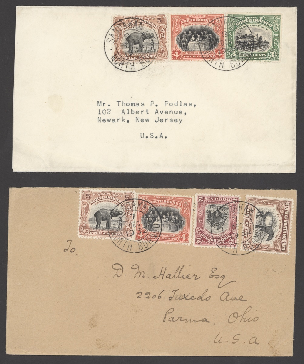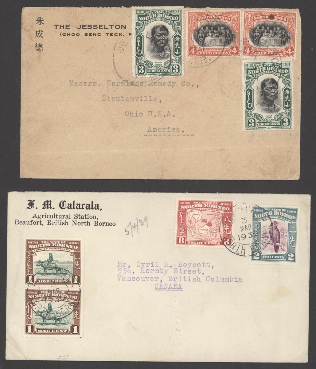 1931-39 envelopes (7) from Beaufort, Jesselton and Sandakan (5) to Canada, Germany and USA (5), each franked at 12c. A good group