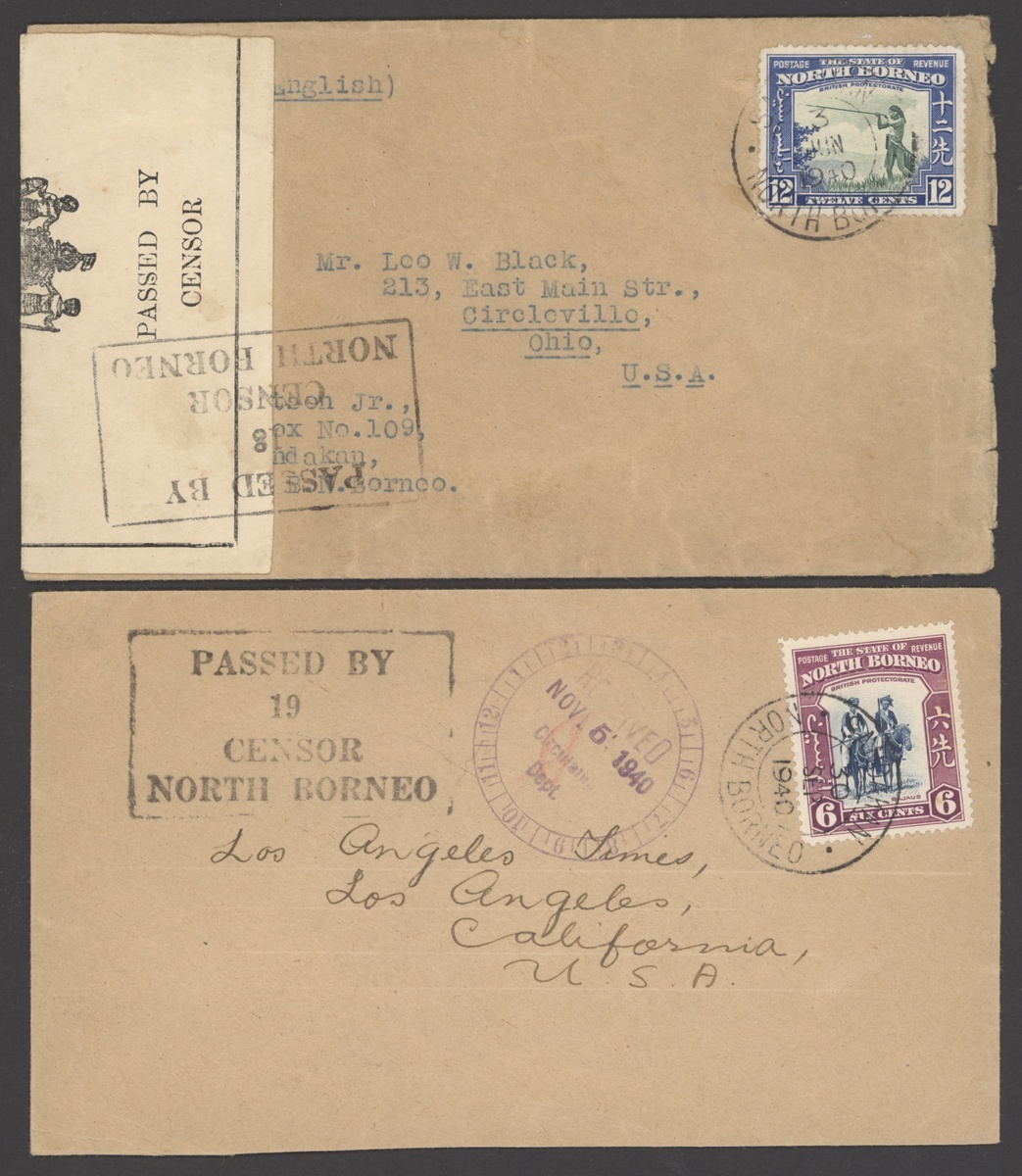1940 envelopes (3) to Canada and USA (2), each franked at 12c. and showing framed