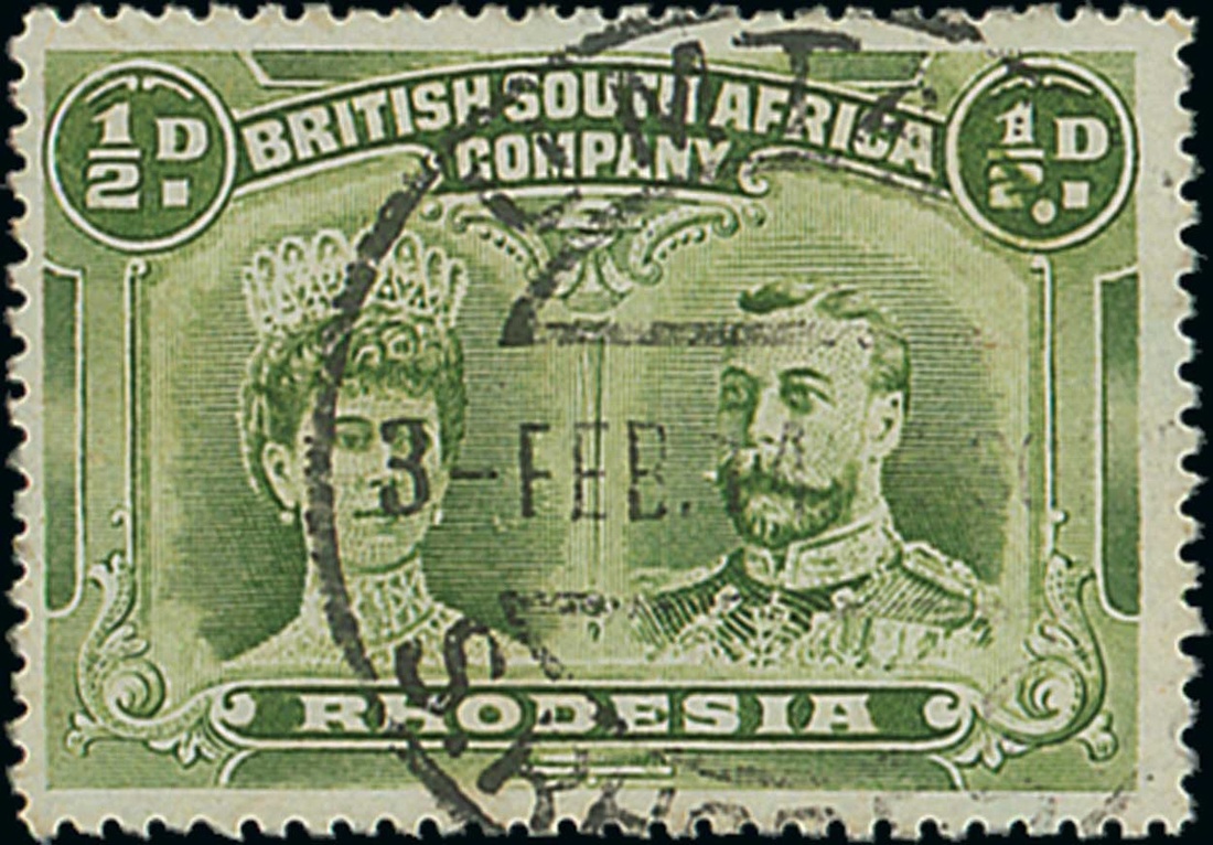 [29], double dot in a very early state, an attractive almost "sage-green" shade neatly cancelled with Umtali datestamp for February 1914; fine and attractive