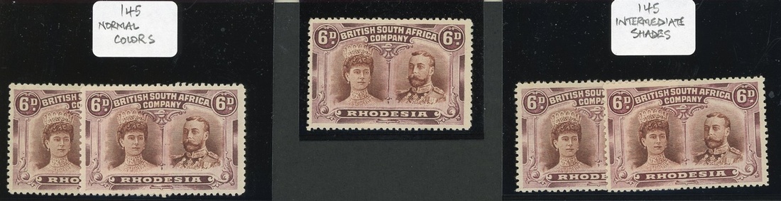 Five examples with two described as in intermediate shades, part to large part original gum