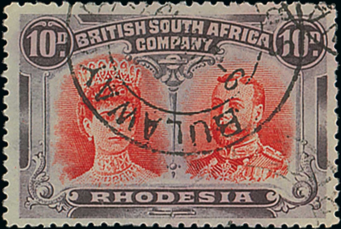 [2] Queen's thick ear, neat large part Bulawayo 1917 datestamp; washed as usual though rare and probably unique as Queen's thick ear