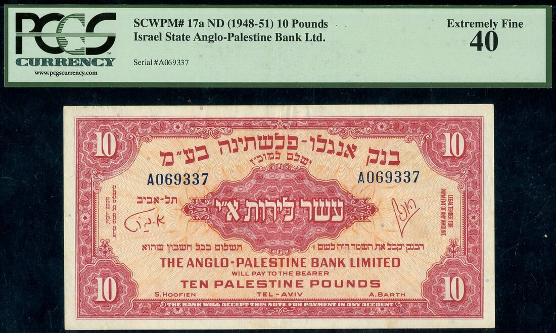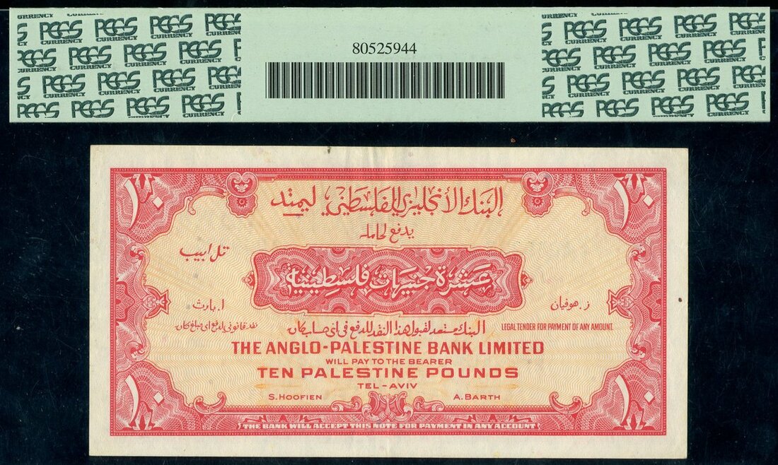 (x) Anglo-Palestine Bank Limited, Israel, £10, ND (1948), dark blue serial number A 069337, pink on orange, guilloche pattern, value in each corner, reverse, pink on orange