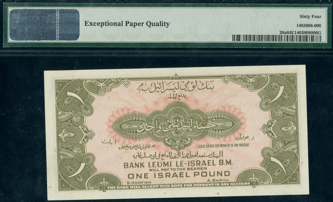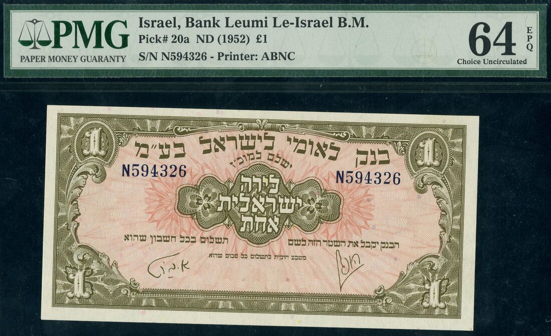 (x) Bank Leumi, Israel, £1, ND (1952), serial number N 594326, green and pink