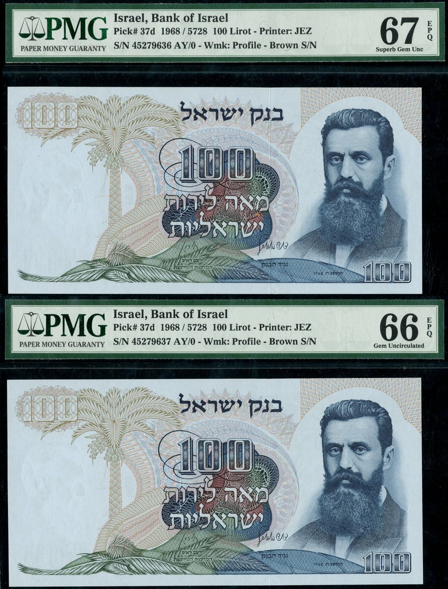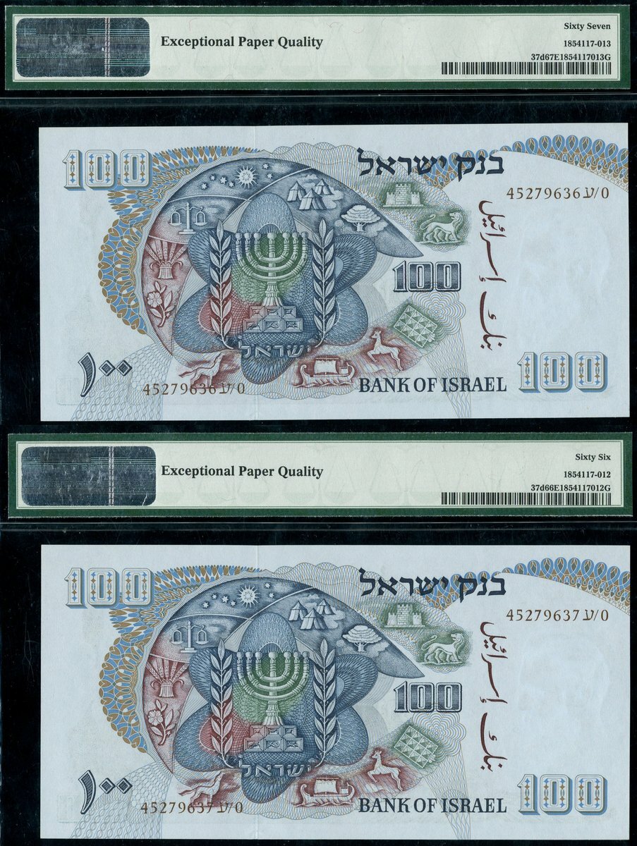 (x) Bank of Israel, 100 lirot (2), 1968, a consecutive pair, blue