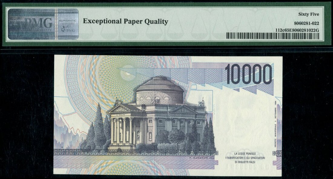 (x) Banca d'Italia, 10,000 lire, 1984, serial number DG 206989L, (Pick 112c), in PMG holder 65 EPQ Gem Uncirculated