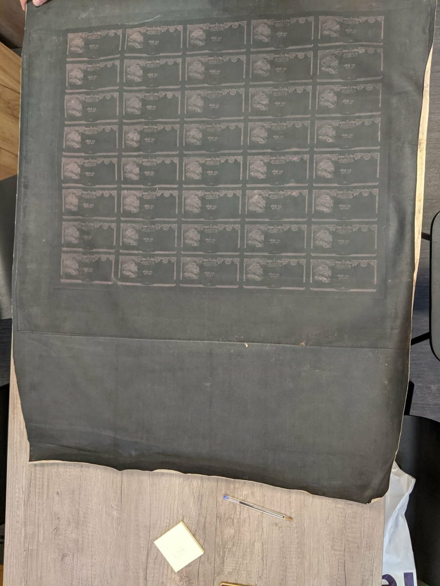 Nepal Rastra Bank, a Nasik press, intaglio security blanket for the issue of obverse 10 rupees ND (2008-10), heavy linen type material with imprint of a sheet of 10 rupee