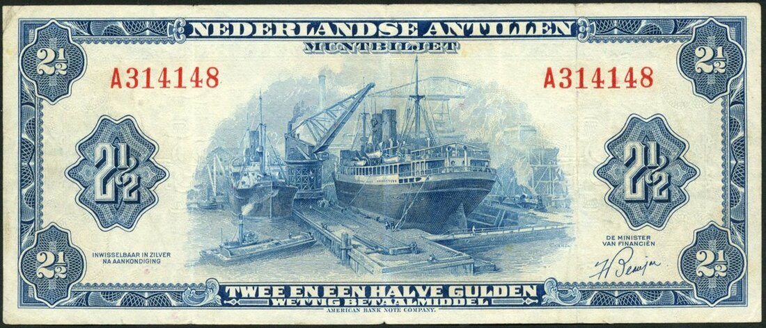 Netherland Antillen, 2.5 gulden, ND 1955, serial number A 314148, (Pick A1, TBB B101a), good very fine, the first banknote bearing the Duth name of Nederlandse Antillen, also a first signature, signed by Frederik Johannes Casper Beaujon