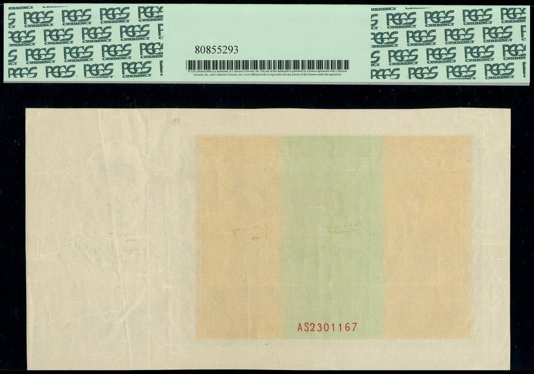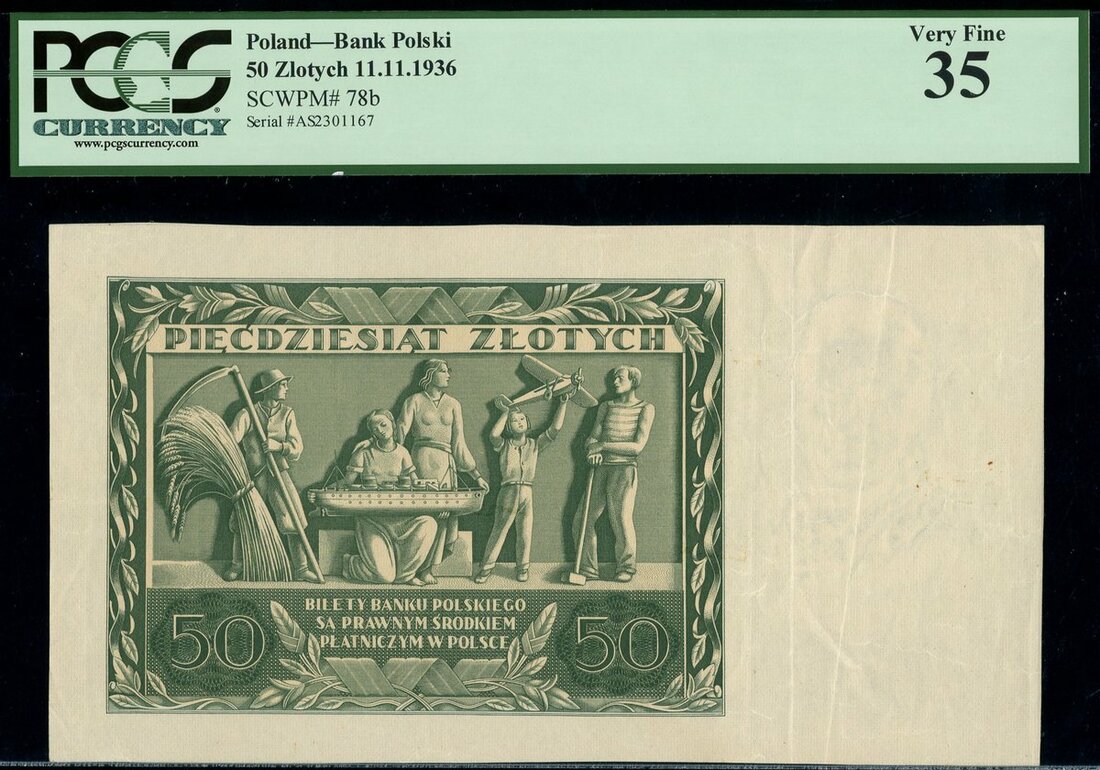 Bank Polski, a partial proof, 1936, red serial number AS2301167, underprint and serial number, reverse green, an allegorical representation of the Polish peoples
