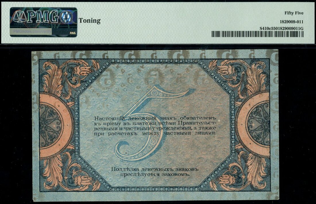 (Pick S410c for type), very unusual watermark of multiple 5's , in PMG holder, toning, 55 About Uncirculated, the only one on PMG population report, scarce type
