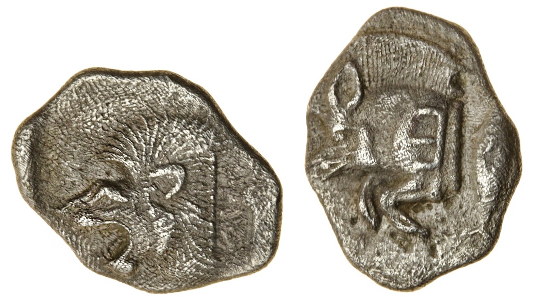 Mysia, Kyzikos (c. 500-450 BC), AR Trihemiobol, 0.78g, forepart of Boar left, tunny in field, rev. forepart of Lion (SNG [Copenhagen], 46; SNG France 363; SNG von Aulock, 1213), slightly porous surfaces, otherwise well-centred, good very fine, scarce thus