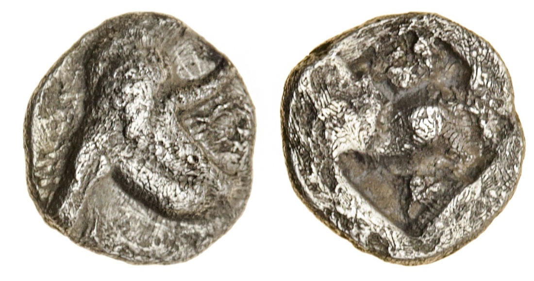 Ionia, Phokaia (521-478 BC), AR Hemiobol (1/24-Stater), 0.20g, head of Griffin left, rev. incuse square (SNG Kayhan 1423), light porosity, good fine