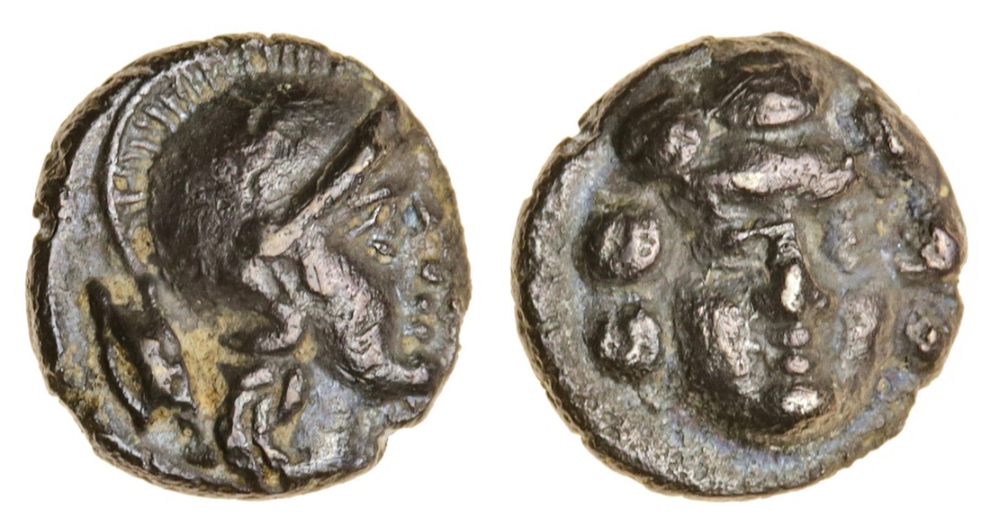 Pisidia, Selge (350-300 BC), AR Trihemiobol, 0.88g, 4h, facing gorgoneion, rev. helmeted Athena right (SNG Copenhagen 254; SNG France 1930), dark tone, very fine