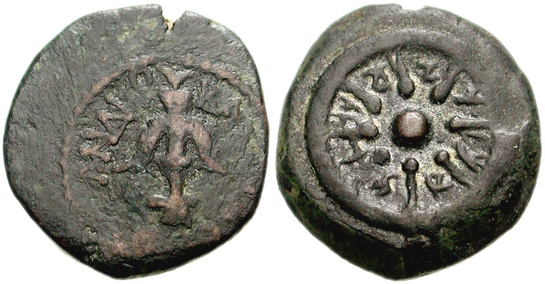 (x) Judaea, Hasmonean Dynasty, Alexander Jannaeus (103-76 BC), Æ Prutah, 15mm., 3.09g, Levant, anchor, rev. star of eight rays surrounded by a diadem (Meshorer Group K; Hendin 469), dark brown patina, very fine