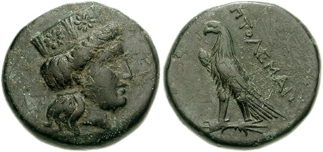 (x) Ptolemaic Kingdom of Egypt, Ptolemy I Soter, as Satrap (323-305 BC), Æ Hemiobol, 10.54g, Paphos, c. 310-306 BC, head of Aphrodite Paphia right, wearing polos, rev. Eagle standing left on thunderbolt (Svoronos 74; Weiser 2 var.; SNG Copenhagen 642 var. [wreath left]), slight porosity, nonetheless lustrous black patina, very fine