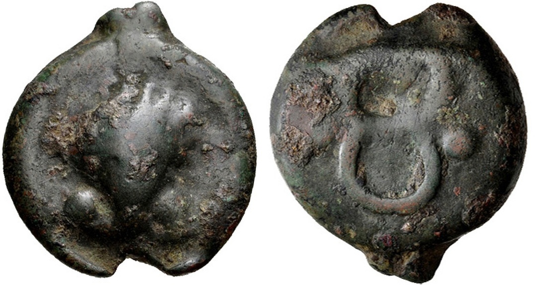 (x) Roman Republic, Anonymous (c. 280 BC), Æ Aes Graves Sextans, 34mm., 41.13g, 12h, Rome, Cockle shell; •• (mark of value) below, rev. Caduceus, •• (mark of value) across field (RRC 14/5; Thurlow & Vecchi 5a; Haeberlin, pl. 40, nos. 9-11; HN Italy 272), green patina with some light deposits, nonetheless a pleasing fine