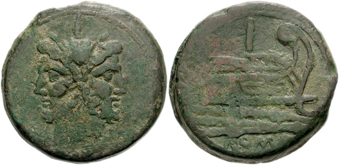 (x) Roman Republic, Anonymous issues (after 211 BC), Æ Aes Grave Asses (2), 36mm., 43.66g, Janus, value above, rev. Prow right, ROMA below (RRC 56/2; Sydenham 143; Kestner 538); another, L. Cornelius Cinna (169-158 BC), Æ As, 21.48g, similar, rev. [CI]NA above prow, ROMA below (RRC 178/1; Sydenham 368), the first with green patina, very fine, the last with some light porosity, otherwise dark brown patina, almost very fine (2)