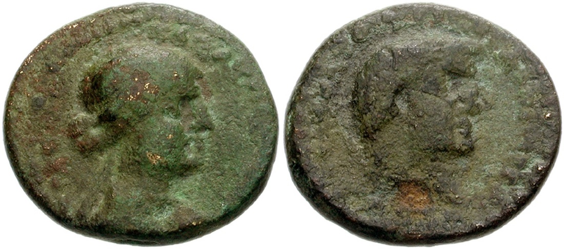 (x) Roman Provincial, Coele-Syria, Chalcis ad Libanum, M. Antonius and Cleopatra (32-31 BC), Æ, 20mm, 4.98g, diademed and draped bust of Cleopatra right, rev. bare head of Antony right (RPC I, 4771; Rouvier 440 (Berytus); Sofaer 43; SNG [Copenhagen] 382 - Phoenicia), a trace of porosity, otherwise a green patina, good fine