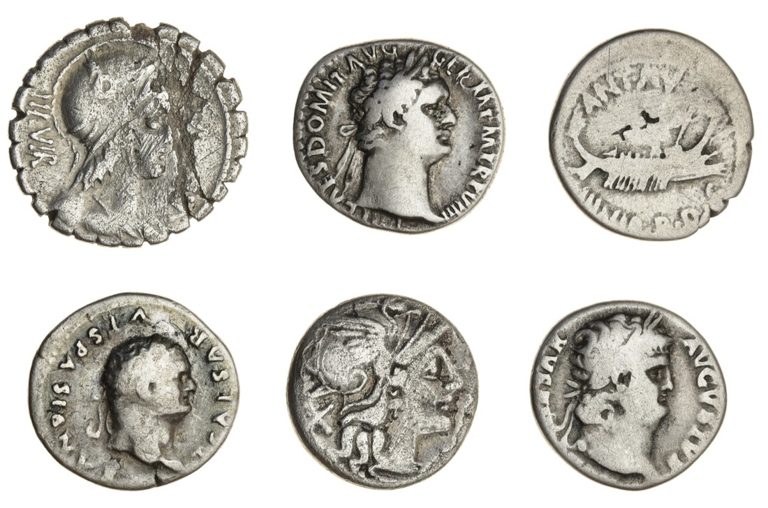 Roman Republic, AR Denarii, Rome (2), Pinarius Natta (149 BC) (RSC Pinaria 1; Sydenham 390; RRC 208/1); another, Mn. Aquillius Mn.f. Mn.n (71 BC), Serratus issue; additionally, Imperatorial, M. Antonius (32-31 BC), AR Denarius, Patras (?), rev. Legion VII; lastly, Imperial, AR Denarii (3), including: Nero; Vespasian; and Domitian, very good to good fine, the portraits distinct on the later issues (6)