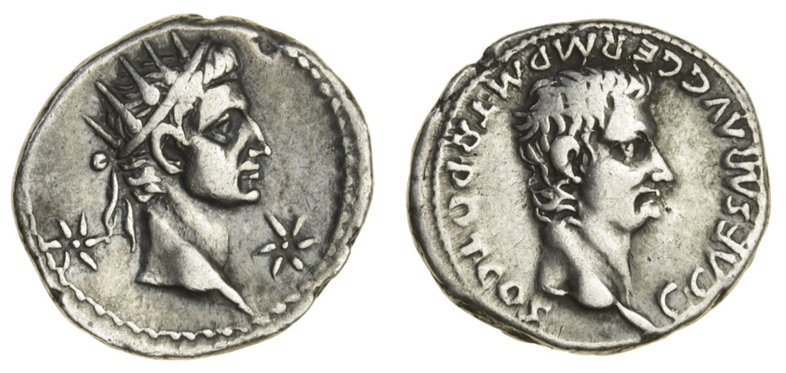 Gaius 'Caligula' and Divus Augustus (37-41), AR Denarius, 3.65g, Lugdunum, C CAESAR AVG GERM P M TR POT COS, bare head right, rev. radiate head of deified Augustus, star before and behind (RSC 11; BMCRE 4; RIC I, 2), from an academic's handling collection, hence rubbed, otherwise well-centred, good fine, scarce