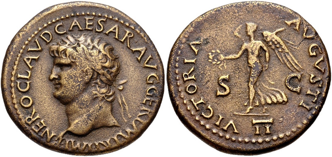 (x) Nero (54-68), Æ Dupondius, 29mm, 13.17g, 6h, Lugdunum, c. AD 65, laureate head left, rev. Victory advancing left, holding wreath and palm (WCN 503; RIC I, 410), minor porosity, otherwise almost very fine, orichalcum patina