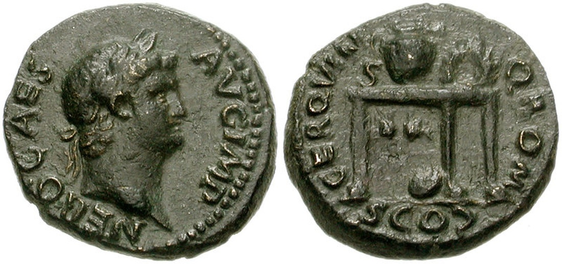 (x) Nero (54-68), Æ Semis, 16mm, 3.76g, 6h, Rome, c. AD 64, laureate head right, rev. table seen from front, bearing urn and wreath; round shield resting against table leg, mark of value above (WCN 325; RIC I, 233), good very fine